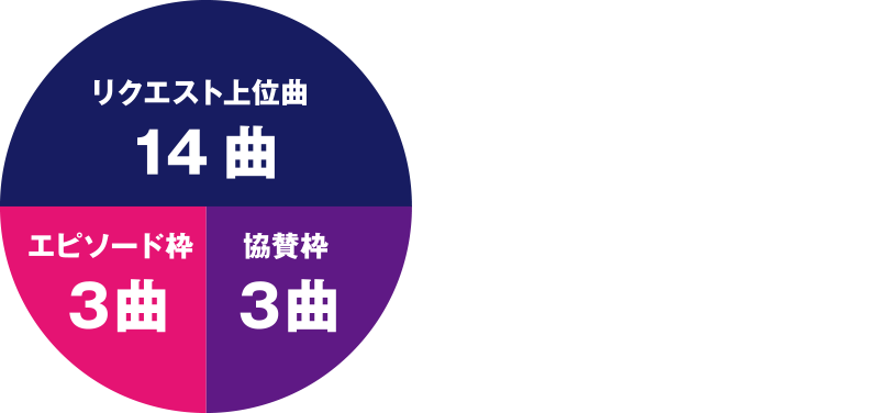 ご記入いただいたメッセージ、 エピソードを元に エピソード枠として3曲、応募数 上位14曲を各日採用いたします