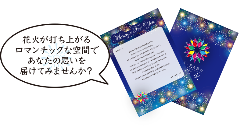採用曲に合わせて 花火が打ち上げられます 感動の瞬間をお楽しみください